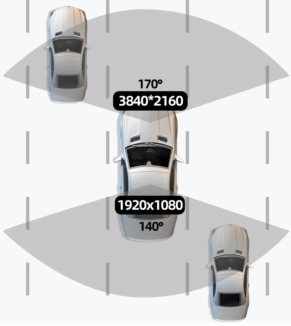 استنادًا إلى وحدة المعالجة المركزية Novatek 96670 القوية، تلتقط العدسة المزدوجة في الوقت نفسه الأمامية والخلفية بسرعة 3840*2160@25 إطارًا في الثانية+1920*1080P@25 إطارًا في الثانية.