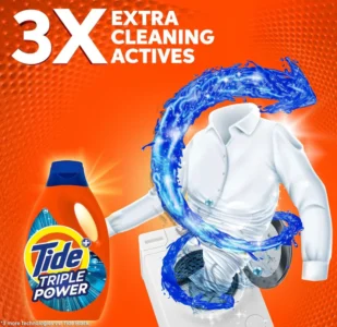 - معالجة البقع مسبقًا: 1. ضع كمية صغيرة من جل تايد Triple Power على البقع 2. افرك بلطف 3. ابدأ الغسيل